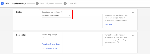 Ustaw strategię ustalania stawek na „Maksymalizuj liczbę konwersji”, by optymalnie wykorzystać budżet